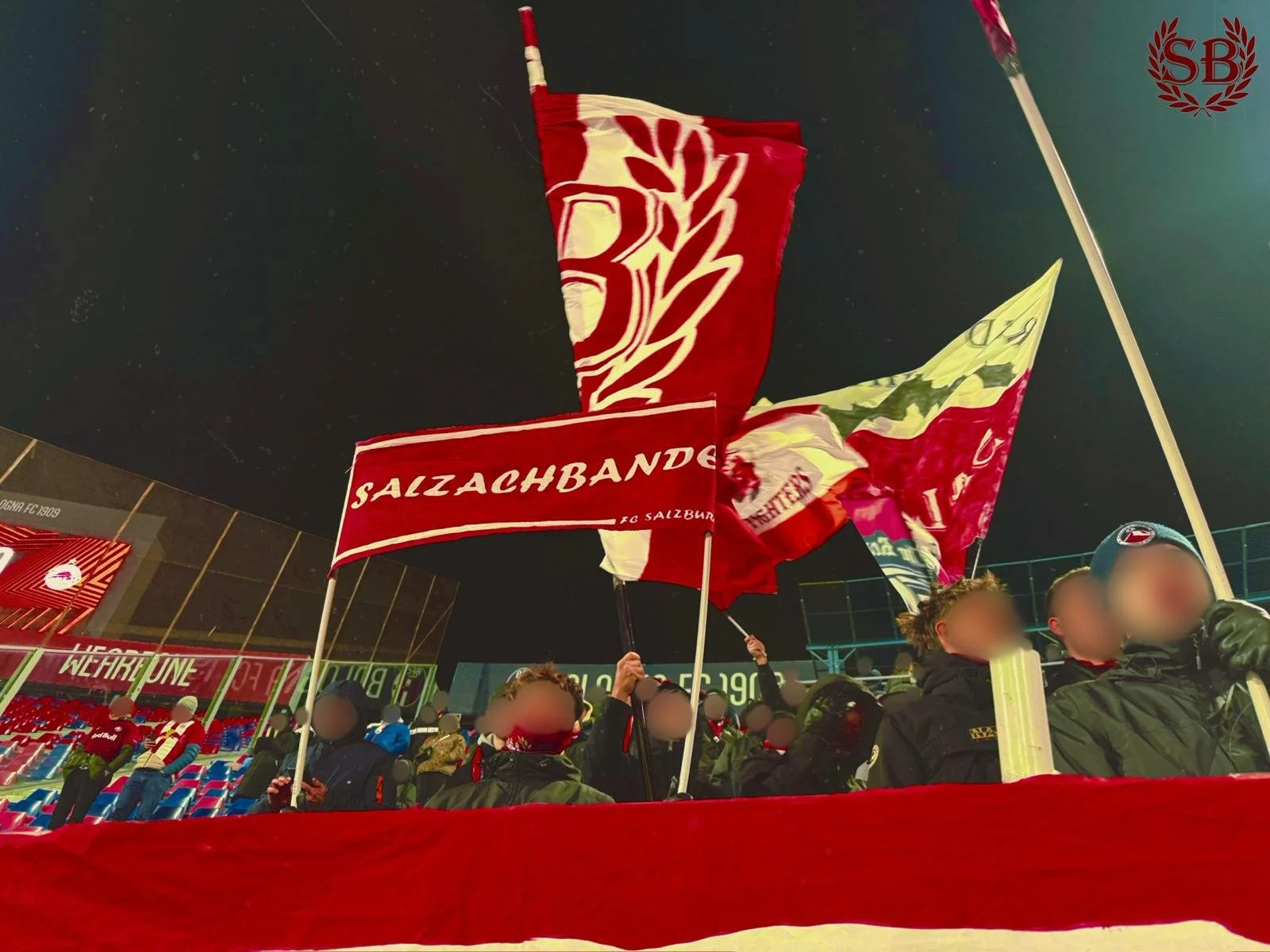 Nach ewigen, unnötig strengen Kontrollen und sehr fragwürdigen Maßnahmen seitens der Security und Polizei beim Einlass kamen wir gute 10 Stunden später in einem eher spärlich besuchten Stadio Renato Dall‘Aro an. Die 400 mitgereisten Salzburger waren motiviert und zeigten von Beginn an Präsenz im Auswärtsblock.